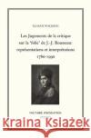 Peut-on penser que l’ écriture soit une terre d’acceuil face aux douleurs de l’exil? Exil de la réalité du déplacement et de l’errance géographique; exil imaginaire, signe du repli consécutif à l’exil intérieur? Les plaintes et les souffrances qui l’accompagnent sont difficiles à comprendre. Les symptômes qui les accompagnent son incrédibles et douloureusement projectifs pour le lecteur, lorsqu’ils ne deviennent pas stigmatisants. Ces questions concluent plus de deux siècles de travaux sur l’oeuvre et le personnage de Rousseau, autant de conditions nécessaires à...