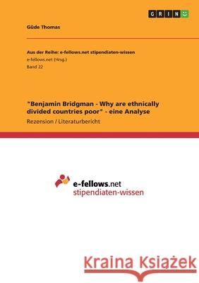 Rezension / Literaturbericht aus dem Jahr 2009 im Fachbereich VWL - Makrookonomie, allgemein, Note: 1,7, Martin-Luther-Universitat Halle-Wittenberg (Wirtschaftswissenschaften), Veranstaltung: Seminar: Ausgewahlte Fragestellungen der Volkswirtschaftslehre, Sprache: Deutsch, Abstract: In seinem Aufsatz entwickelt Bridgman anhand empirischer Daten ein dynamisches Wachstumsmodell, mit dem sich Einkommensunterschiede zwischen ethnisch homogenen und heterogenen La ndern simulieren lassen. Ethnische Heterogenita t bewirkt eine deutliche Minderung der Wirtschaftsleistung, die sich mit Bridgmans...