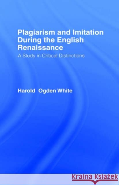 Plagiarism and Imitation During the English Renaissance: A Study in Critical Distinctions