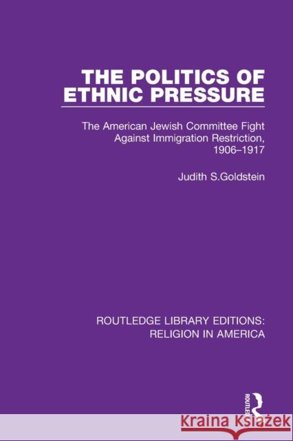 The Politics of Ethnic Pressure: The American Jewish Committee Fight Against Immigration Restriction, 1906-1917